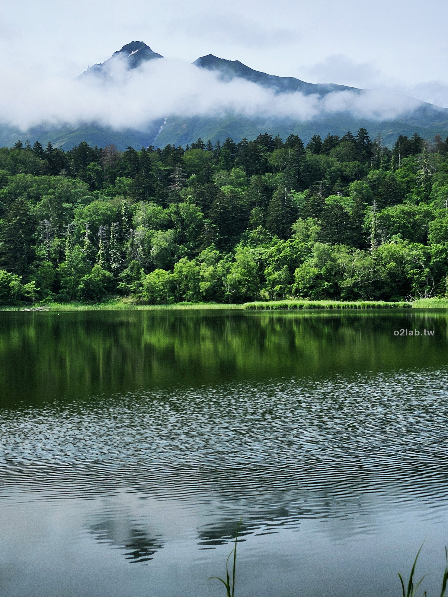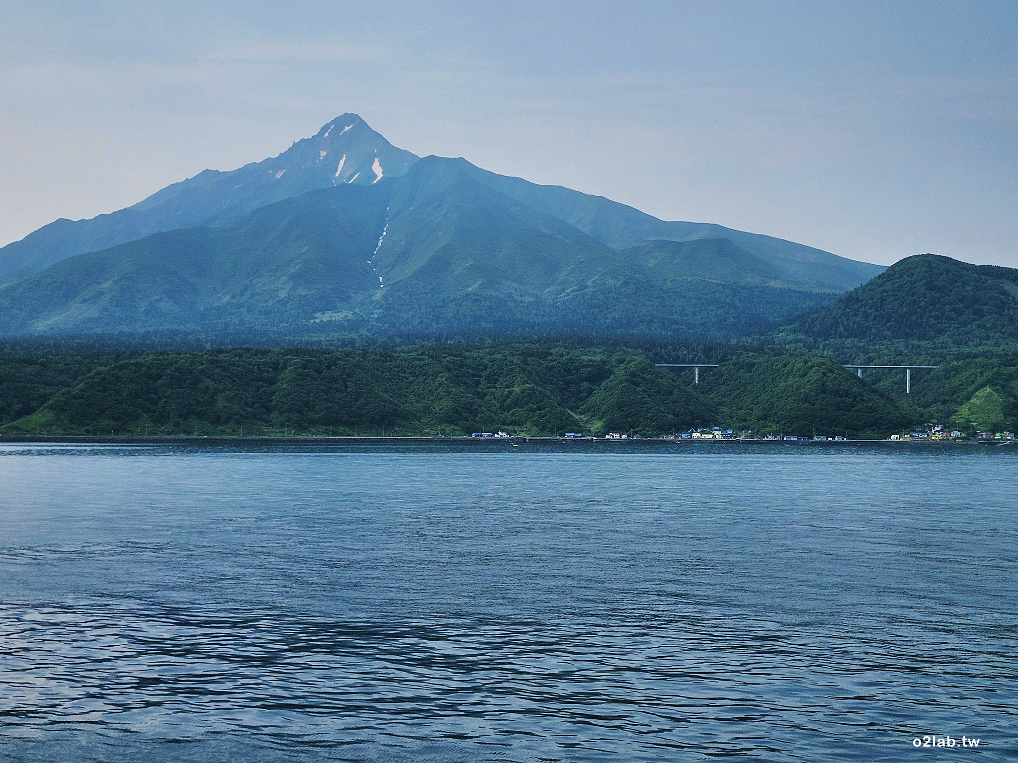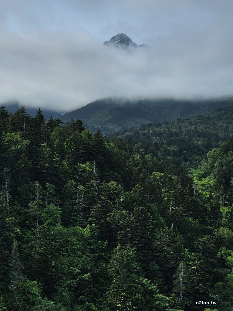 偶爾停在橋上,抬頭望著在雲霧裡的利尻山。啊~~山頭出現了!!!