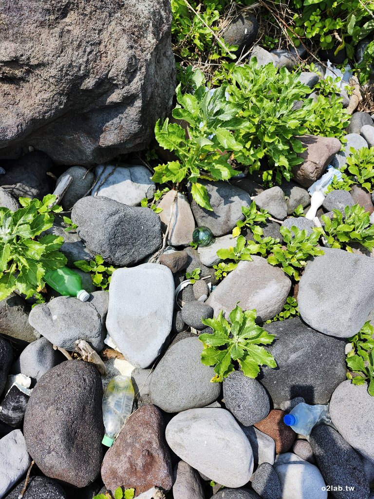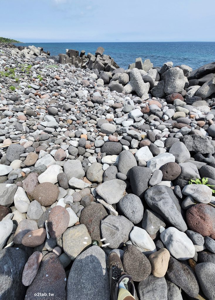 再往前騎了一點,很開心自己標的點位完全沒問題,真的有條小徑通往海邊,順利抵達自己在google earth上看見有漂流物聚集的海岸。記得才下到海邊走沒30公尺,燈稜~~你看到了嗎? 果然不愧是玻璃浮球之鄉耶