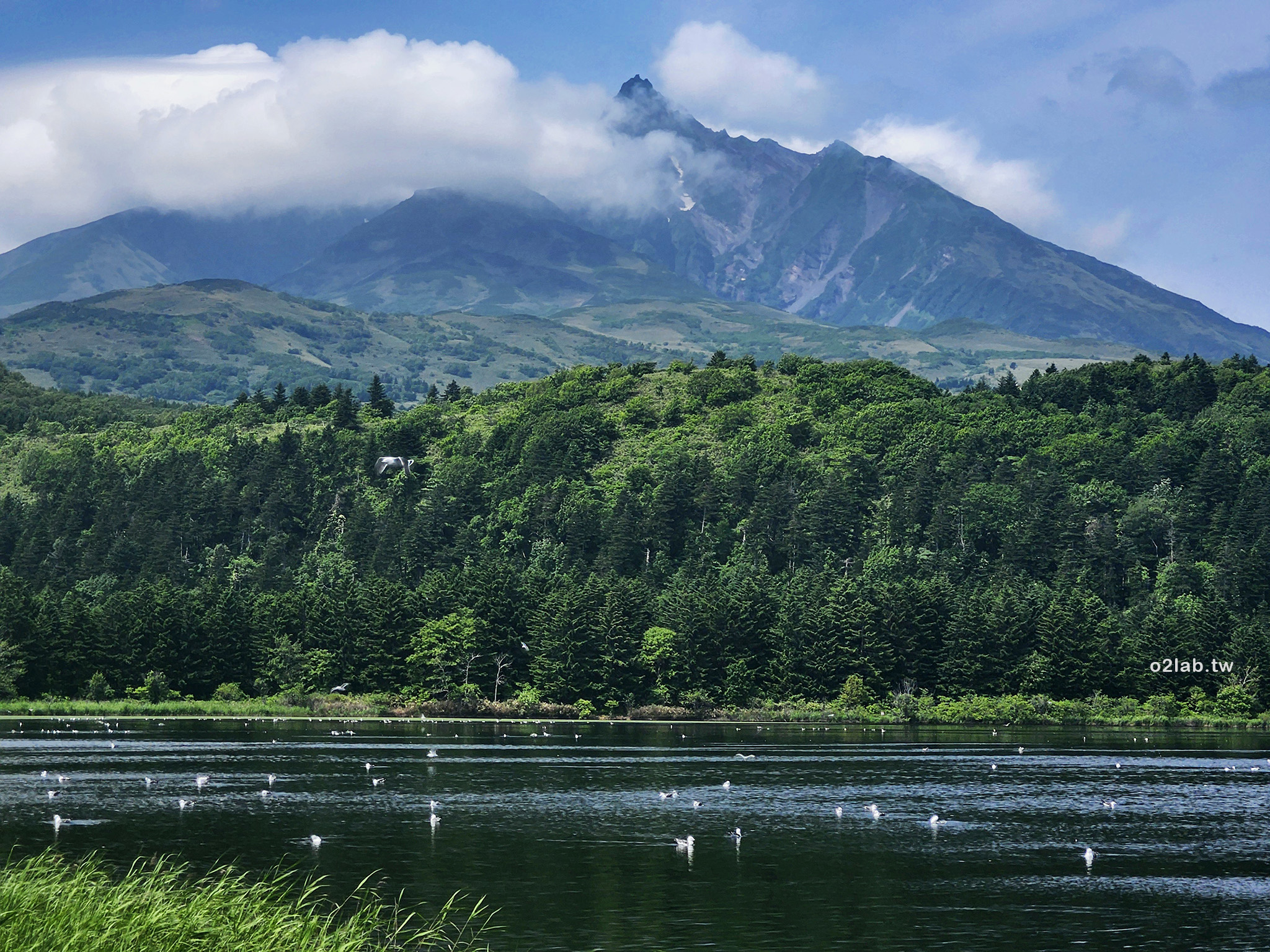 オタトマリ沼觀景台,附近就是白色戀人的招牌景色沼浦展望台。利尻島上蠻多這種前有湖泊後有大山的景色,這裡據說是利尻島上最大的湖泊,生活在這裡的候鳥也不少。偶爾受到驚動,群鳥飛起時很壯觀。非常非常適合野餐的地方。