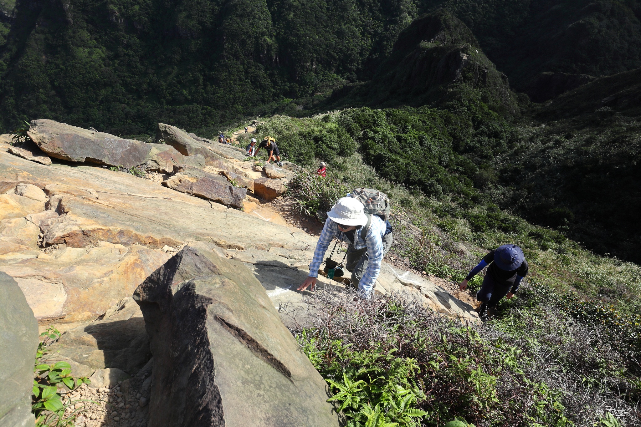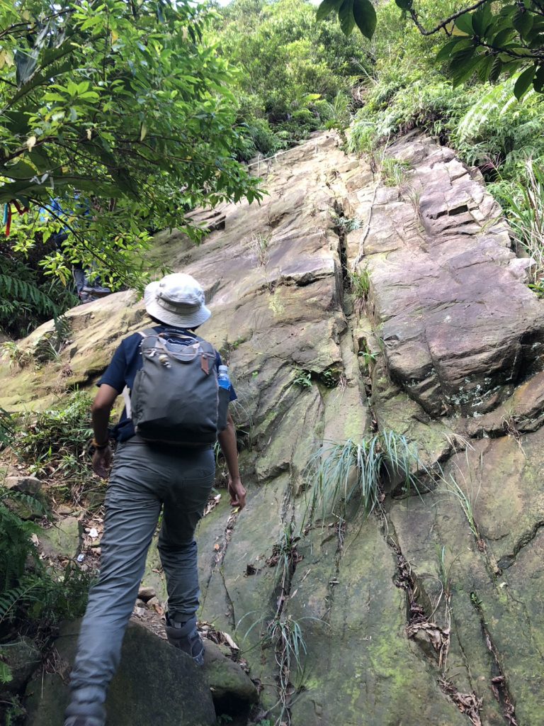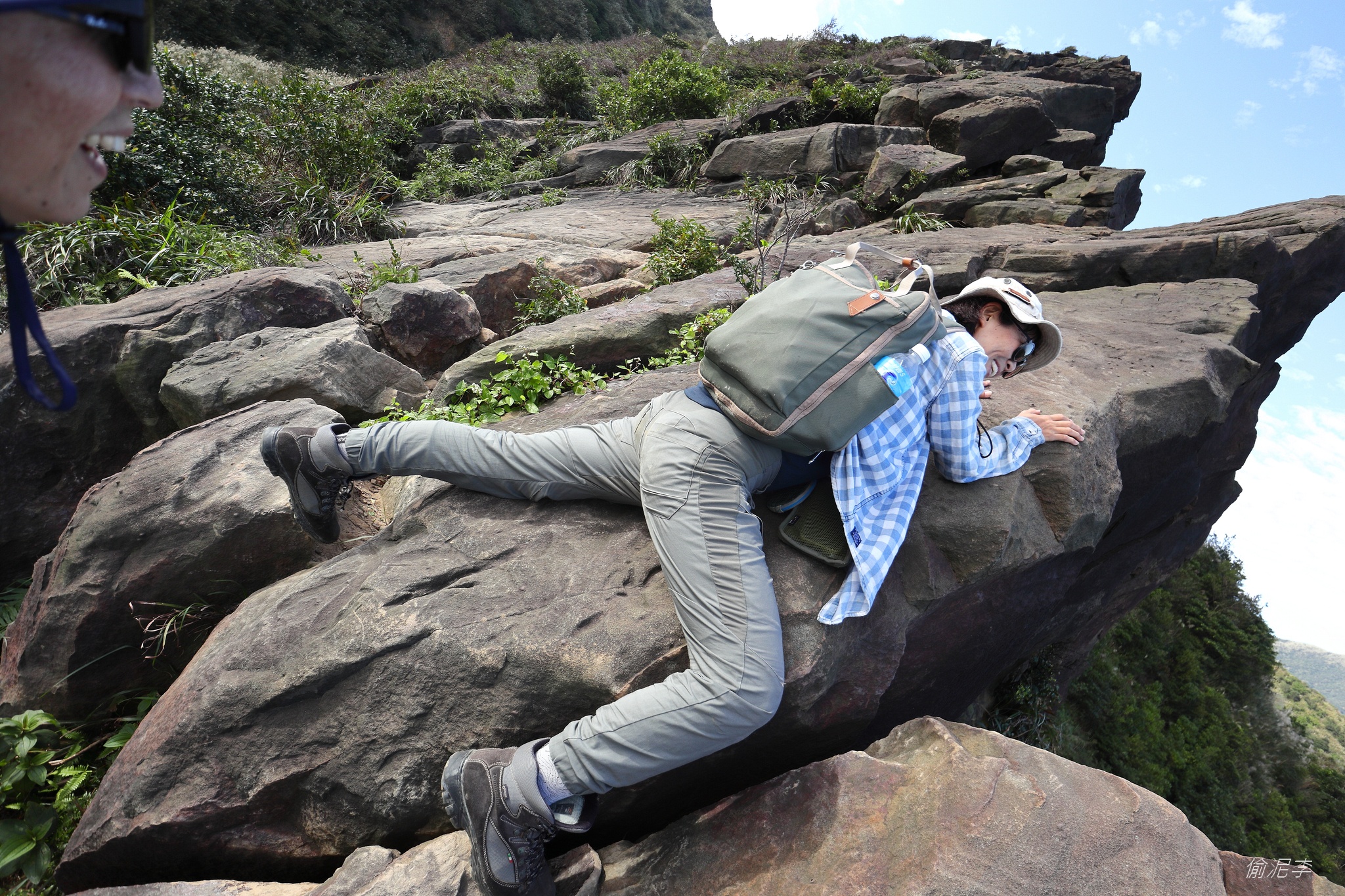就是抓著岩壁一路往上往前。笑說今天都沒辦法站直走路ㄟ (沒膽)