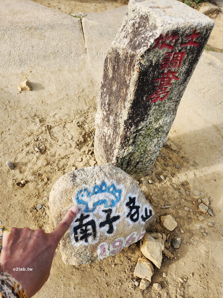 很就到了南子吝山的三角點,三角點旁有顆可愛的劍龍石碑