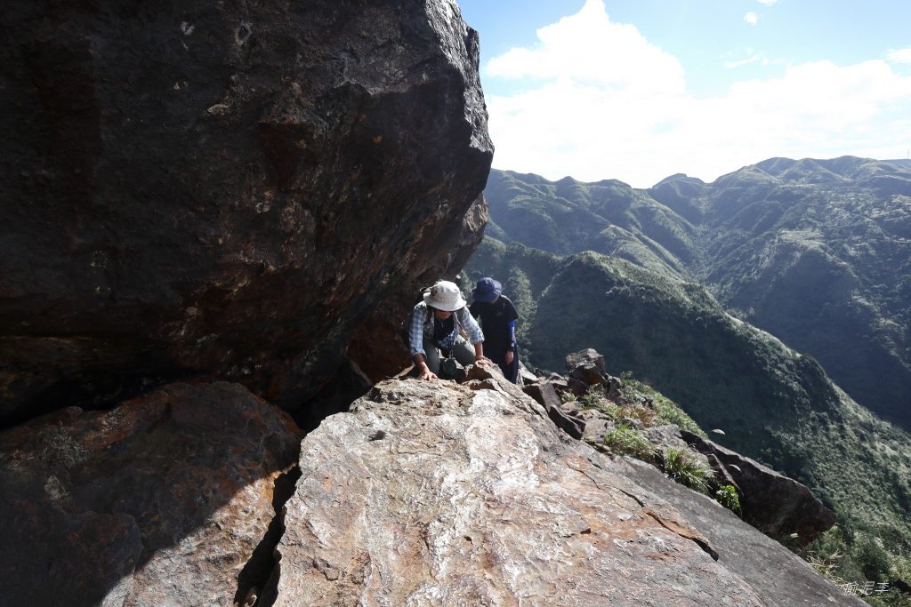 沿路上有熱心山友在岩壁上刻出了動線,其實蠻有幫助的。至少在向前移動時能快速找到最省力的方向